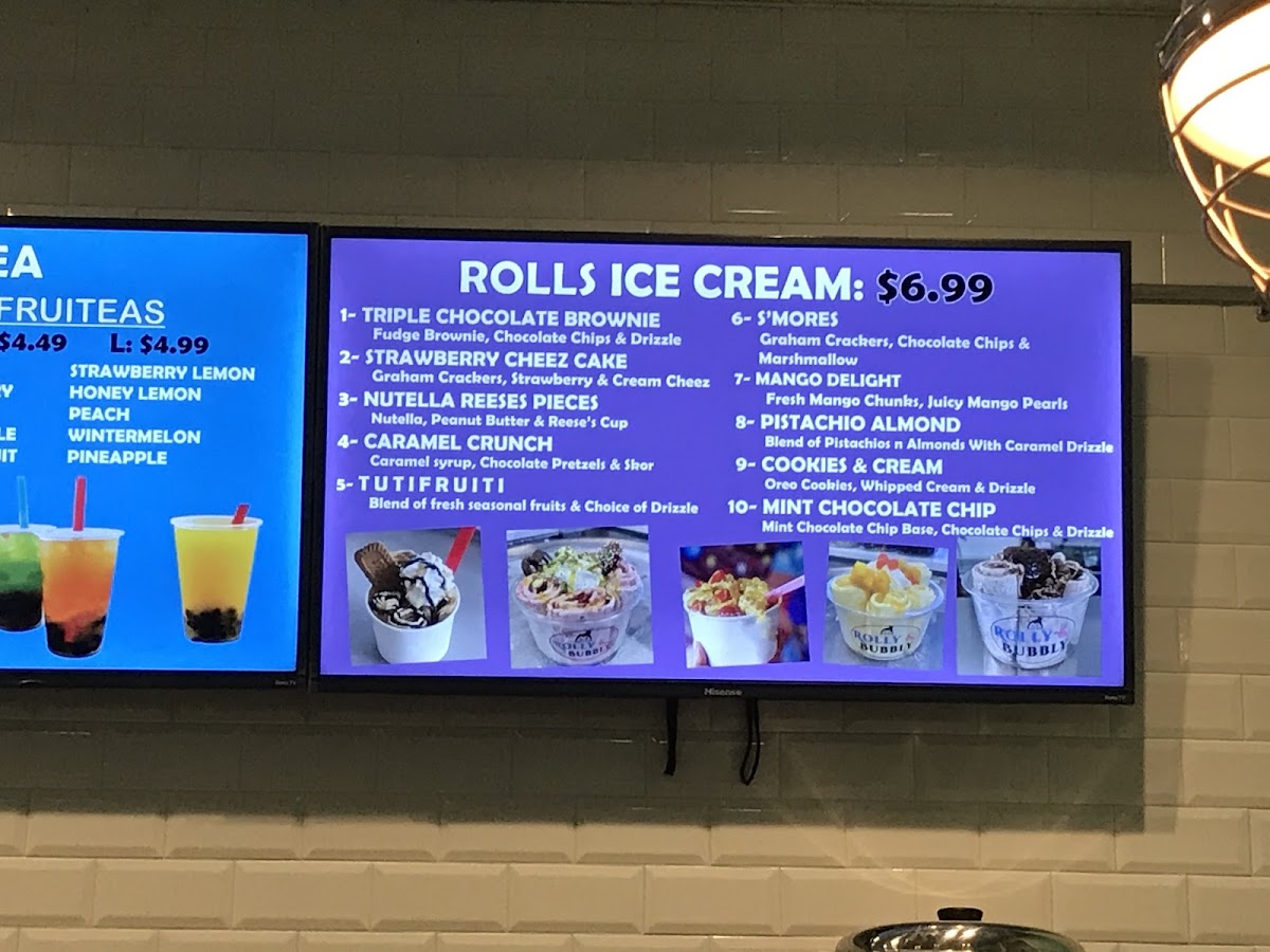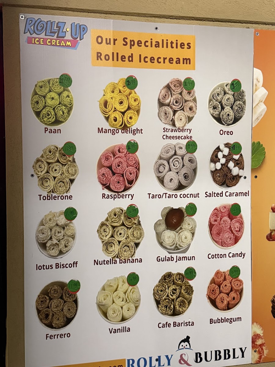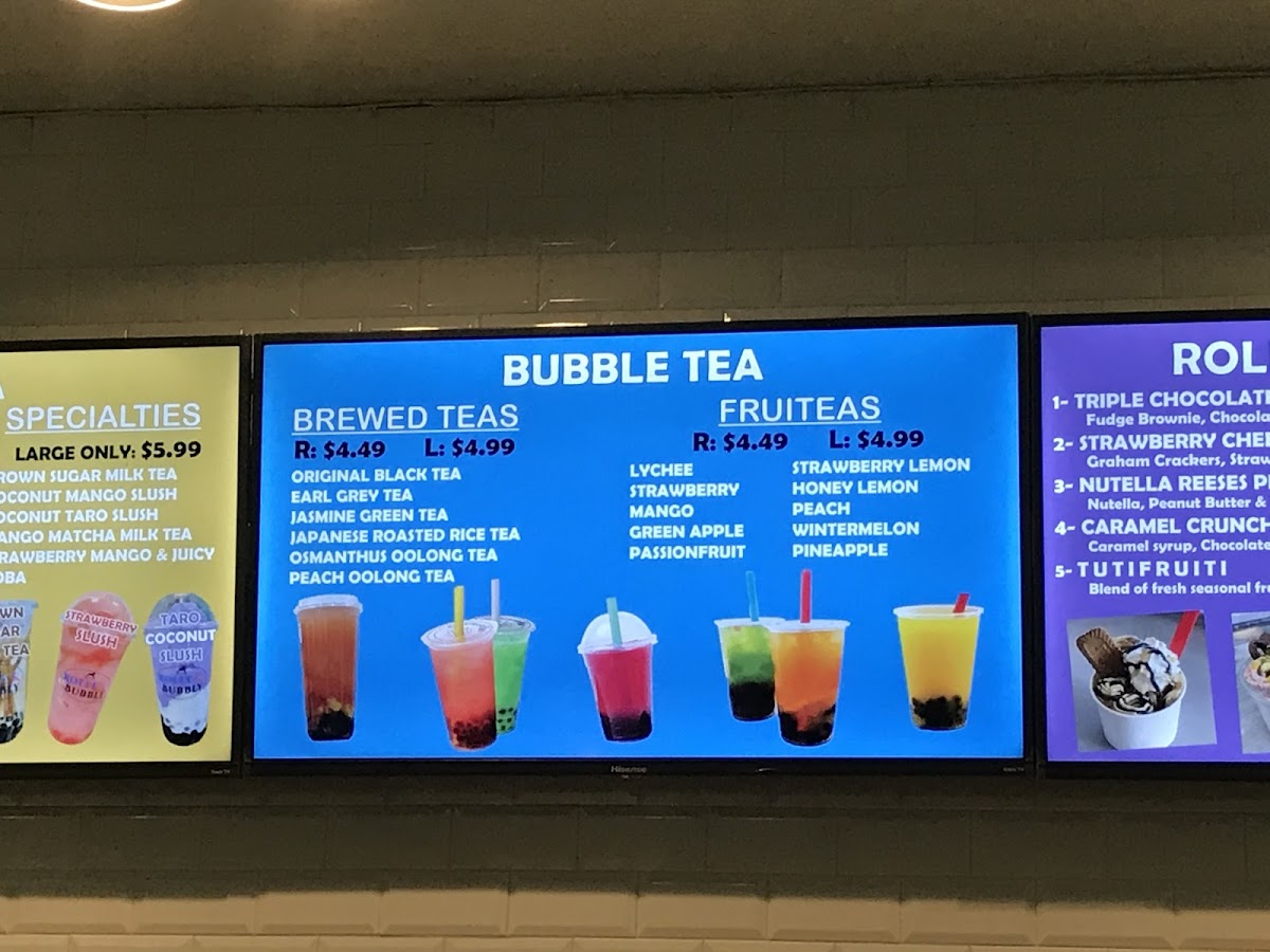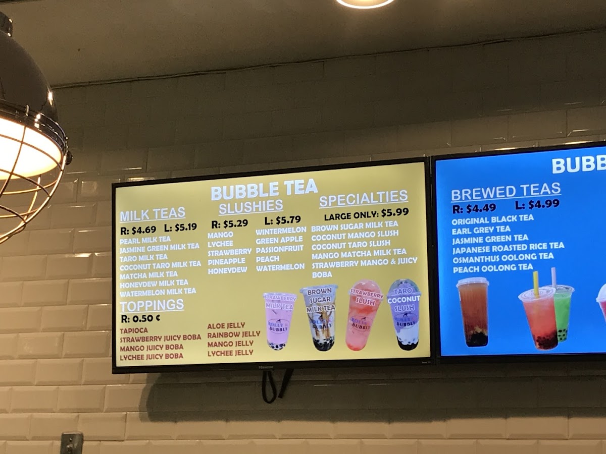 Rolly & Bubbly offers a delightful variety of drinks, perfect for anyone looking to cool down or indulge in a sweet treat. For milkshake lovers, the Strawberry Milkshake and Taro Milkshake are standout options, with the Oreo Cheesecake Milkshake adding a unique twist. Slushie enthusiasts can enjoy refreshing choices like the Pineapple Slushie or the Mint Slushie, while the Wintermelon Slushie and Watermelon Slushie provide vibrant flavors. Their milk teas, including the creamy Coconut Taro Milk Tea and the fruity Mango Milk Tea, offer something for every taste. For those craving something a bit more special, their large-only specialties like Brown Sugar Milk Tea and Strawberry Mango Milk Tea stand out as rich and flavorful options. The Iced Vanilla Cold Brew and Iced Caramel Macchiato cater to coffee lovers, with both providing a smooth, refreshing pick-me-up. Fresh milk lattes such as the Taro Latte and Brown Sugar Latte provide a cozy, comforting alternative to the usual iced drinks. For a fruity twist, the Strawberry Lemon Fruit Ice Tea and Mango Fruit Ice Tea are vibrant and perfect for warm days. With its expansive drink selection, Rolly & Bubbly truly offers something for every preference, making it an ideal stop for a refreshing beverage or indulgent treat.